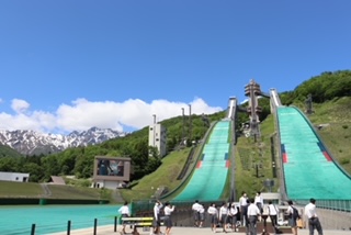 白馬ジャンプ競技場の様子です。いろんなアングルから見ると,全然違う姿を見せてくれます。絶景です。