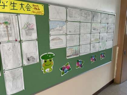 また,写生大会をはじめ,学級旗お披露目会や華道・いけばな体験等,今までの1年生の取組の様子を「思い出アルバム」という形で写真掲示しています。休日参観にお越しいただいた保護者の皆さまには,ご覧いただけたのではないでしょうか。ご来校の際は,ぜひ,ご覧ください。