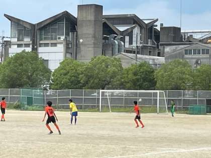 9日(土)、サッカー部が京都市中学校総合体育大会1回戦に出場しました。夏の厳しい日差しの中での試合となりました。本校グラウンドでの試合でしたので、緊張も少なかったのか、試合を通じて、動きもよく、日頃の練習の成果を発揮し、攻守ともに圧倒し、見事勝利しました。