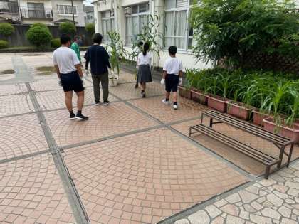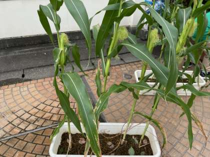 支援ルームで栽培しているトウモロコシです。春先に種をまきました。例年に比べると梅雨が短かったので、生育が心配されましたが、順調に育ち、実をつけています。これからも大事に育ててください。