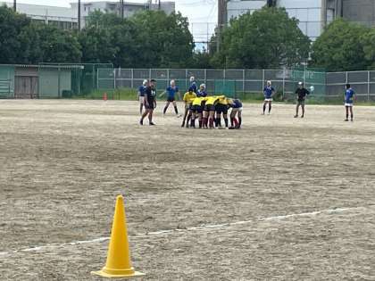 ラグビー部の活動の様子です。ラグビーは、他の種目より夏季大会が遅いので、今まさに夏季大会に向けて、練習を重ねています。今日は、京都市だけでなく他県の学校も招き、練習試合を行っています。