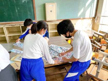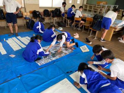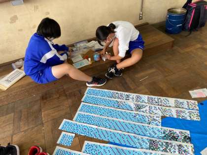 文化祭の展示で、今年の2年生のテーマは、現代をあらわす『姫路城』。クラス全員でしっかり取り組みました。昨日で、ひと段落(完成)したため,貼合せ作業が始まりました。各クラスジョーズ係(展示係)が、放課後残って作業してくれていました。どんなことでも、見えないところで支えてくれる、頑張ってくれる人は,クラスにたくさんいます。そんな活躍をお互い認め合い、自分ができることは、進んで引き受けてほしいなと思います。263人のスクラムが、少しずつ強くなってくれることを望みます!展示係の皆さんありがとう!