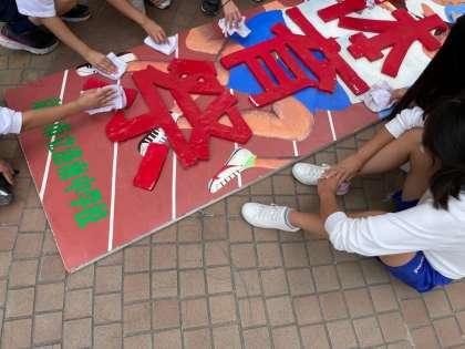 放課後、明日の体育祭に向けてグラウンドの石拾い、ライン引き、テント設置、放送準備、道具の確認、美化活動等の準備をしました。準備完了後、応援団のリハーサルを行いました。明日の体育祭当日には、今まで取り組んできたことをそれぞれの場面で精一杯、発揮してください。ぜひ、みんなで力を合わせて記憶に残る体育祭にしましょう。
