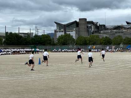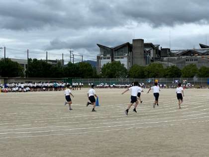 2年生男子100m走の様子です。体格もおおきくなり、走りもダイナミックです。