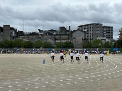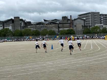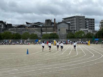 3年生男子100m走の様子です。3年生にもなると、からり速い生徒もいます。