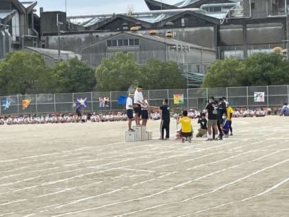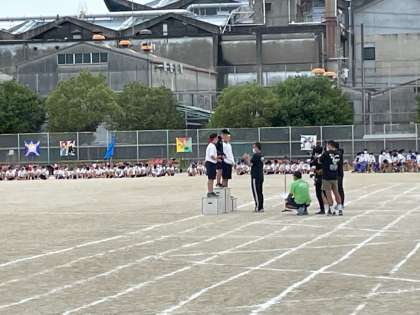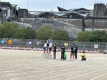 閉会式の様子です。学年別学級対抗、色別対抗、応援合戦の表彰を行いました。