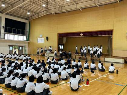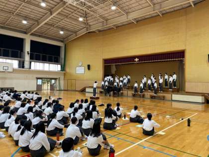 緊張していたのか、鑑賞態度は、すばらしいのですが、舞台に上がるといつもより、歌声が小さいかなと思いました。本番までの練習時間を大切にして、コンクール当日までに自分たちの合唱を仕上げてください。