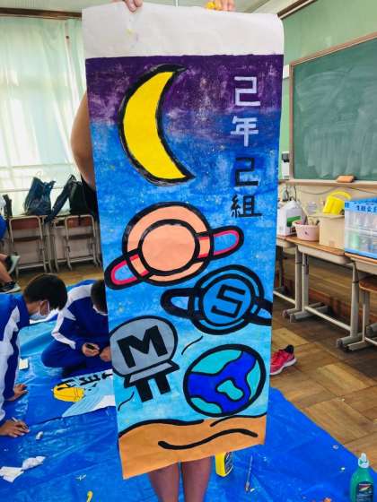 全クラス完成しました。どのクラスも曲の題名をうまくイメージしたイラストになっていますね。保護者の方々には,お子様のクラスの発表のみの観覧となり,前半クラス・後半クラスの入れ替えがありご迷惑をおかけしますが,是非中学校生活初めての合唱コンクールをお楽しみいただけたらと思っております。私たちも楽しみにしています!また,展示作品も是非ご覧ください。学年・教科どれも力作です。