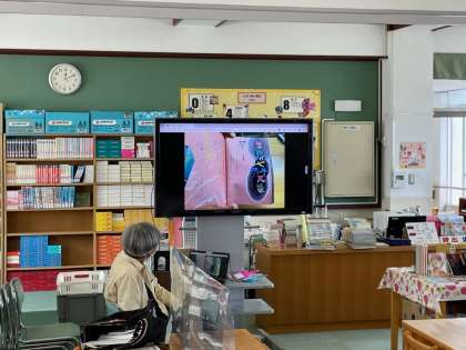 図書室での支援ルームの国語の授業の様子です。GIGA端末を使って音読の発表をしていました。
