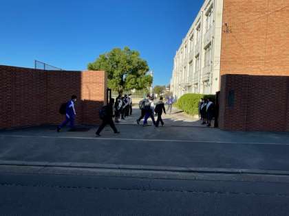 それぞれが、自分をしっかりアピールするべく、選挙運動を行っていました。登校してくる生徒も、あいさつを交わしながら、「頑張って」と手を振ったり、激励の声を掛けたりしていました。