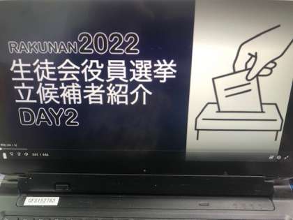 また,昨日・今日には昼食時間に立候補者の紹介ビデオが各クラスで流され、全校生徒がテレビに釘づけでした。