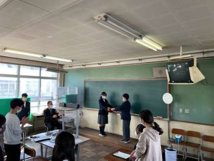 生徒会旗受け渡し、旧生徒会長のあいさつです。