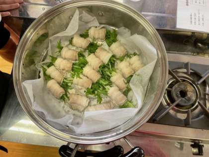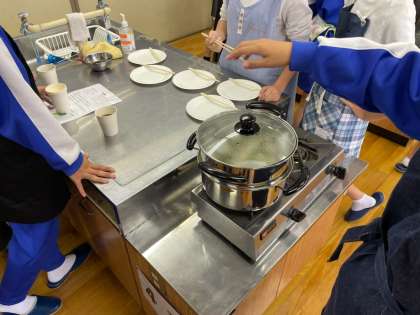 調理実習の様子です。おいしそうに蒸し上がっています。