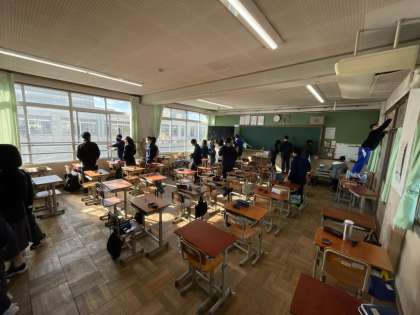大掃除の様子です。日頃の清掃活動でも、熱心にしてくれています。丁寧にきれいに使うことで校舎も長持ちすると思います。掃除をしている生徒は、「いつもより長い時間、掃除をしたけれど、普段できていないところができたので、楽しかった」と話してくれました。