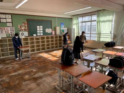 放課後、環境委員、評議員を中心に、新学期から気持ちよく学校生活が送れるように各教室の油引きを行いました。ありがとうございました。