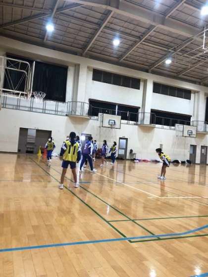 2年生 体育女子は、バスケットボールです。冷たく、寒い冬の体育館での学習ですが、ウォーミングアップやドリブルシュートが始まると、体は温まり、掛け声や歓声が響きます。怪我にも注意しなければならない種目でもあるので、その防止のためには、準備運動が、重要です。また、接触プレーもある種目なので、注意していても、しすぎるということはありません。仲間の動きにも注意してください。いざ、試合が始まると、一生懸命ボールを追いかけています。今日の学習のめあては、ピボットとフェイントでした。レイアップシュートも上手になってきて、今後の授業が楽しみです。