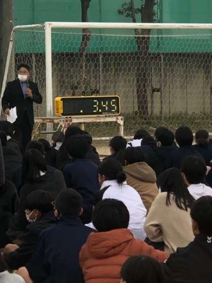 いつも和ませてくれます。ありがとう。昼休みには,3年生体育委員の体操動画が流れました。新年頑張りましょう週間の取り組みとしてとても良いですね。6限は避難訓練が行われました。雨が心配されましたが,無事に終了。避難時間も『3分45秒』でした。静かに速やかに行動できていました。グランドに避難してからもしゃべらず,しっかり整列できていました。緊急な事態に備えた訓練です。もしもの時に,冷静に判断・行動できるといいですね。