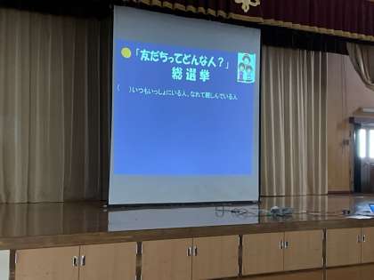 「友だちとは、どんな人ですか?」、「友だちと意見が違ったとき、どうしますか?」ということを考えながら、望ましい友人関係をつくりために大切なことについて学びました。