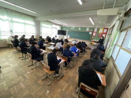 また、明日は、公立前期選抜及び特別入学者選抜が行われます。3年生が、がんばって、全力を出し切ってくれることと信じています。今まで、いろいろな人に支えられてきたと思います。受検だけは、自分で乗り越えなければならないものです。