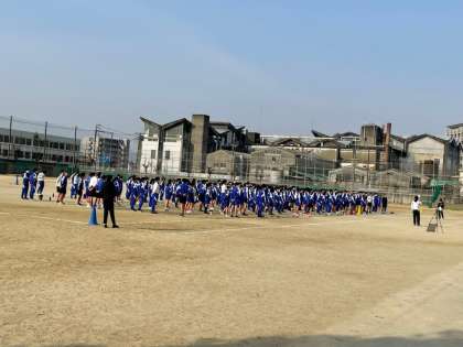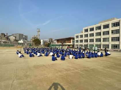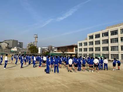 3年生は、スポーツ大会を行っています。司会、進行等、運営も生徒たちで行います。開会式では体育委員のあいさつ、選手宣誓や校歌も流れました。天候にも恵まれ、白熱した大会になることでしょう。春の陽気の中でルールを守り、マナーよく、精一杯プレーしてください。