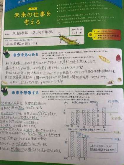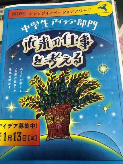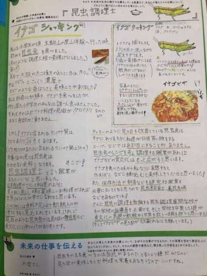 3月末、大阪で行われる第10回 ナレッジイノベーションアワードの最終選考会に、4組のОさんがパフォーマンスを行うことが決定しました。多数の応募者の中からの最終選考で選ばれました。中学生アイディア部門は『未来の仕事を考える』がテーマです。小学生のころ里山体験で昆虫食を食べたことをヒントに『昆虫調理士』という仕事に着目し、イナゴクッキングなどのレシピも載せています。将来の自分を見つめ・想像し・考える。そして発表。子供たちの可能性は、無限大。素晴らしいアイディアに感動しました。最高のパフォーマンスができますように。応援しています。