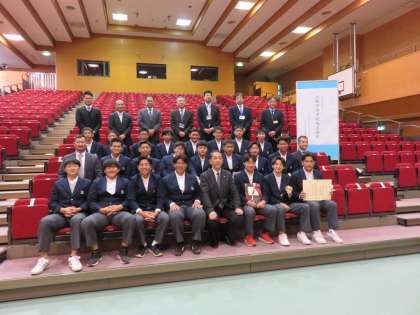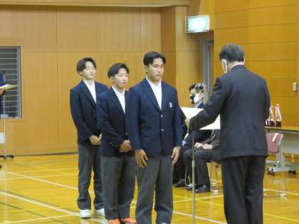 本校選手では、近畿中学校総合体育大会ラグビーフットボールの部で見事優勝を果したラグビーフットボールの部の選手が京都市教育長から表彰を受けました。
