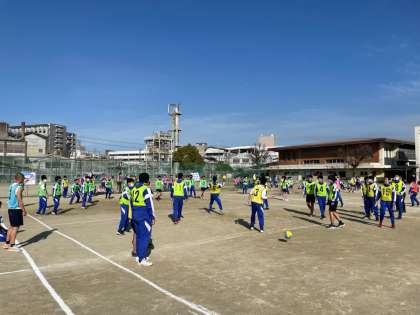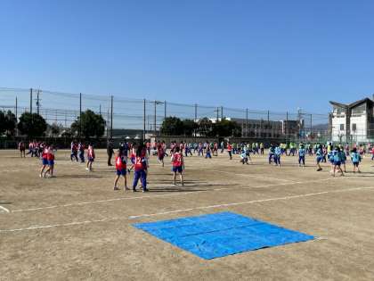 ドッヂボールの様子です。安全にも配慮し、ソフトなボールを使っているので、コントロールが、難しいようです。
