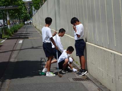 定休日等の関係でどうしても体験のない日があります。今日は学校の周囲にある側溝等のそうじをしました。日頃通学路で使っている歩道ですが、中学校の壁沿いには多くのごみがありました。短時間ですが集中してそうじをがんばってくれました。