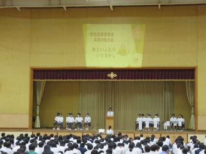 最初に、各委員長が自分たちで作ったパワーポイントを使いながら年間活動目標、計画、具体的な取り組みについて話しました。その後、議案書討議で出た内容を質問者が発言し、各委員長が回答をしました。生徒一人一人が自分たちの学校をよりよくしようと真剣に発言者の話を聞いている様子でした。