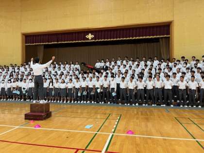 合唱コンクールに向けて練習を行いました。練習を始める前に、各学級で決めた目標を発表しました。指揮者からもこの合唱に込めたい思いと、全員で学年の合唱を成功させようと