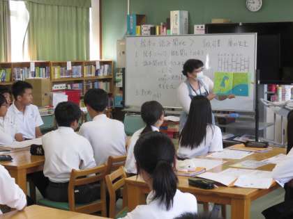 3年生は10月に家庭科の授業で「幼児とのふれあい授業」を行います。保育園・こども園・幼稚園の園児に中学校まで来ていただいて、中学生と交流します。その活動の中で中学生が読み聞かせをします。今日はその準備と練習のために、図書館司書の先生に絵本の読み聞かせについての授業をしていただきました。実際に図書館司書の先生に読み聞かせをしていただいたのですが、中学生も絵本の世界にひきつけられていました。その後はグループで絵本の読み聞かせにチャレンジしました。どうすれば上手に読み聞かせができるか意見交流をしていました。