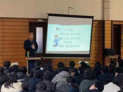 本日、1年生対象に本校のスクールカウンセラーの阿部先生によるこころの健康講座が行われました。