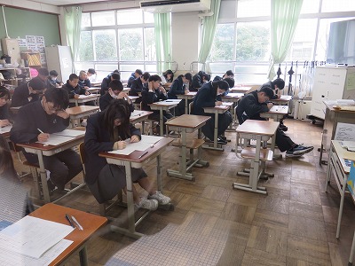 各教室では、日頃の学習の成果を発揮しようと精一杯テストに向き合う様子が見て取れました。