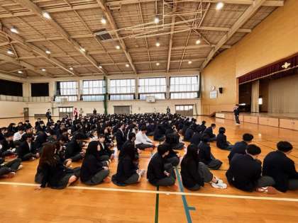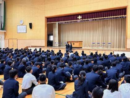 先日の始業式では、昨年度から継続して取り組んでいる「輪島応援プロジェクト」について、生徒会本部の生徒より報告がありました。800着近くの寄付が集まりました。ご協力頂いた方、ウェアの寄付を頂いた企業の皆様、ご協力ありがとうございました。集まった物資は、GW中に輪島へと届ける予定をしております。
