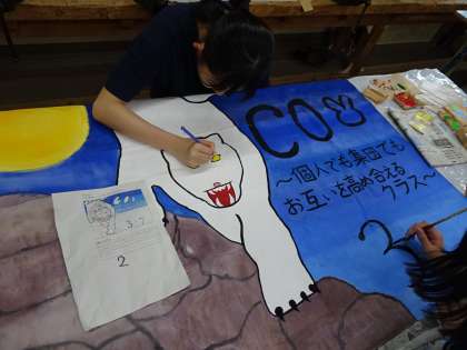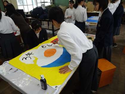 学級旗制作も4日目となり、ほとんどのクラスが完成しました。渾身の力と心を込めた、旗職人たちの苦労の結晶、クラスでお披露目する日が待ち遠しいですね。