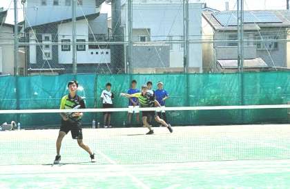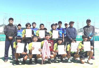 3ペアの思いを込めたプレーに、2・3年生部員が必死の応援を繰り広げ、優勝することができました。団体戦として、部員の思いを1本1本のプレーに込めた熱い試合となり、みんなで戦った試合を経験することができました。技術的な面や攻め方など、夏に向けての課題もあり、日々の練習で力を伸ばしていこうと考えています。たくさん応援に来ていただき、ありがとうございました。
