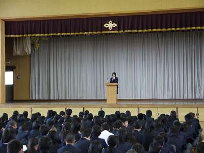 その後,校長先生から,洛南中学校の歴史(創立記念)と日本国憲法について講話がありました。