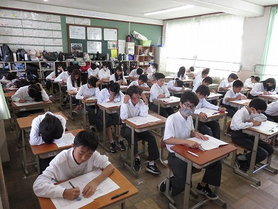 日頃の学習の成果を発揮するため、集中してテストに取り組んでいる様子が見られました。