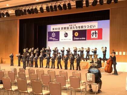 1月13日(月祝)京都テルサで行われた「はたちを祝うつどい」で、「おめでとうございます!」の気持ちをこめて、吹奏楽部が演奏させていただきました。