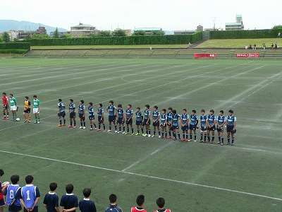 5月20日(日)に宝ヶ池競技場において、ラグビーの準決勝が行われました。後半リードされましたが、終了間際にトライをあげゴールも決めて、見事に勧修中学校に勝利しました。体を張った全力プレイーに観客席から惜しみない拍手と声援が飛んでいました。決勝戦は5月27日(日)11時20分から、西京極陸上競技場メインスタジアムで、西陵中学校との間で行われます。