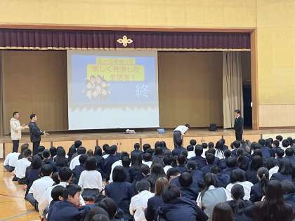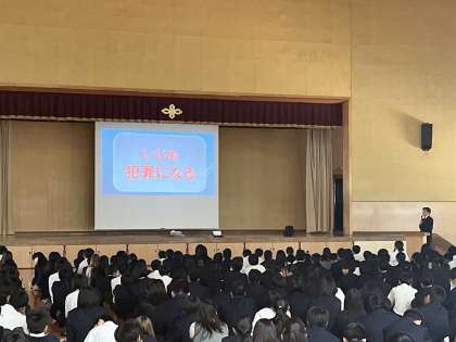 4月30日、1年生は非行防止教室があり、いじめやSNS、最近問題となった闇バイトなどについて学びました。自分が加害者、そして被害者にならないようにするためにはどのような行動をとるべきか考える良い機会になりました。法律だけでなく、学校のルールもしっかりと守ってより良い学校生活を送って下さい。