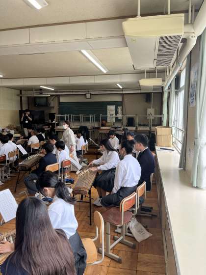 今週の1年生音楽の授業で講師の先生方をお招きし、お琴の授業を行っていただきました。