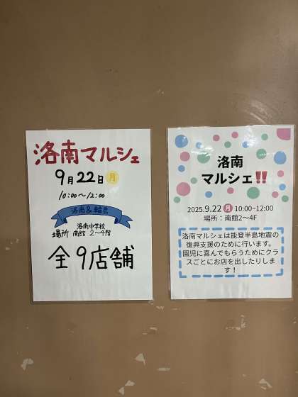 9月5日に行われる予定だった洛南マルシェが天候不良の関係で、来週22日の月曜日となりました。少し間は空きましたが、当日に向けて3年生は着々と準備を進めてくれています。当日が素晴らしい1日となるよう期待をしています。また、明日18日から19日にかけては全学年定期考査を迎えます。3年生にとっては10月の3者懇談会や進路選択に向けて大切なテストになります。良い準備をして迎えてください。学校全体としては体育祭や文化祭に向けての取り組みが始まっています。まだまだ暑い日が続きますので体調面にはくれぐれも気をつけて過ごしていきましょう。