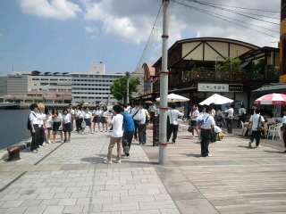 天候に恵まれ、現在予定通り、長崎市内の班別研修(フィールドワーク)を実施しています。出島のチェックポイントの様子です。