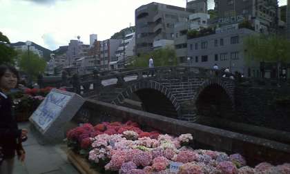 眼鏡橋の様子です。長崎市内の班別研修(フィールドワーク)終了まで、あと1時間ほどとなりました。時間を有効に散策してください。