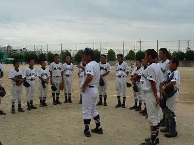 9月2日(日)に八条中学校で、野球の秋季大会(新人戦)1次リーグ戦が始まりました。この夏休み、1・2年生が新チームを結成して、一生懸命練習に取り組んできた成果を発揮する大会の始まりです。この日の相手は桃陵中学校でしたが、15対1で快勝しました。リーグ戦の二試合目は、9月8日(土)に洛南中学校で、開晴中学校と対戦しました。初回は緊張しすぎてミスから失点(1点)しましたが、その裏の攻撃ですぐに2点を奪い返しペースをつかみました。4回終了時には4対2でリードしていましたが、終盤に1点差まで追いあげられました。しかし、再度突き放して、7対4勝利しました。