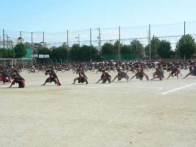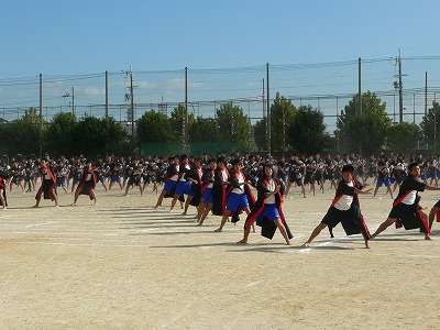 新学習指導要領に基づきダンスが必修化されましたが、そのことを受け、体育の授業で「ソーラン節」に取り組んできました。その授業の成果を発表する場として、体育祭で3年生全員が「ソーラン節」を踊りました。人数が多いためかけ声が大きく、よく揃っていたいたので、大変迫力のあるものに仕上がりました。保護者の方々から、大きな拍手をいただきました。そして、来年も見たいですねと言っていただきました。