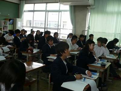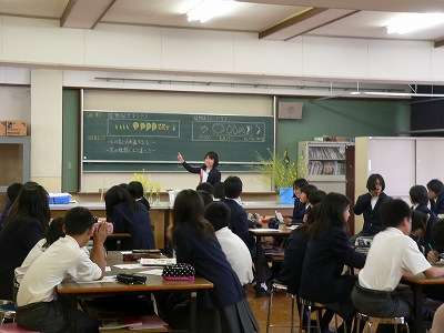 平成25年5月10日(金)5限に、今年度はじめての授業参観を実施しました。各学年とも多くの参観者がありましたが、その中でも1年生の保護者の方々が多かったです。小学校と違って教科担任が授業を教えますが、その様子を見ていただけたことと思います。どの学年の生徒も、主体的に授業に取り組んでいました。