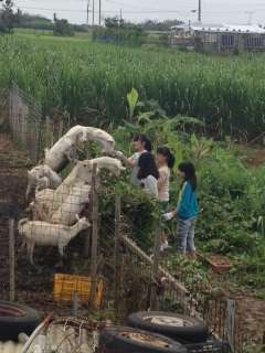 民家ごとに、様々な体験をさせていただいてます。この民家では、山羊の世話を体験させていただいてます。