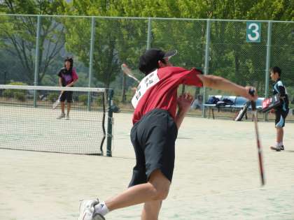 男子は、U−17に3ペアが、U−14に1ペアが参加しました。U−17の2ペアは、共に1次リーグ予選を2位で通過しましたが、決勝トーナメントの1回戦で、共に敗れました。もう1ペアは下京中学校とペアを組みましたが、惜しくも1次リーグ予選で敗退しました。U−14のペアは、1次リーグ予選を1位で通過し、決勝トーナメントの1・2回戦を勝利しました。決勝進出をかけた試合で、残念ながら広野・樫原中学校のペアに敗れました。しかし、堂々のベスト4でした。